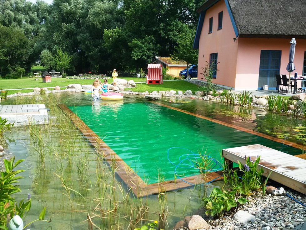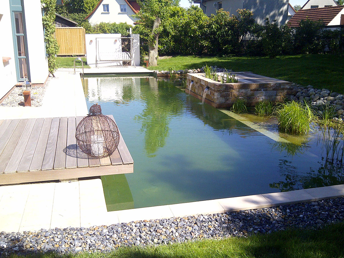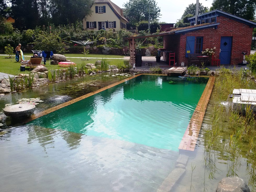 Der Swimming-Teich sorgt durch die harmonische Einheit von Pool und Biotop für ein ungetrübtes Badevergnügen. Schwimmen in natürlichem Wasser, ganz ohne Chemie, aber mit viel Fauna und Flora. Holen Sie sich die natürlichste Sache der Welt in Ihren Garten. Wir sagen Ihnen wie. Kein anderes System hat so viele Referenzanlagen vorzuweisen. Lassen Sie sich eines davon in Ihrer Nähe zeigen. Wir betreuen Sie von der Planung des Schwimmteichs, über die kompetente Ausführung bis hin zur Pflege.